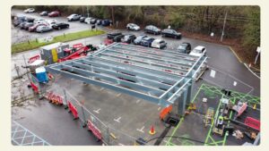 Solar carports are simple in concept: they provide covered parking while capturing sunlight through solar panels mounted on the top. The energy produced flows straight into the leisure centre, helping to run everyday operations more sustainably.